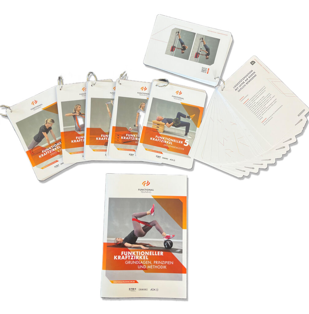 Um die natürliche Funktionalität der Teilnehmenden im Verein zurückzuerlangen, wurden folgende Praxis-Broschüren für Functional Training im Verein entwickelt. Aufbau und Nutzen der Broschüre sind die übersichtliche Darstellung sowie Erklärungen inklusive Fotos zum Test und anschließendem Programm zur sofortigen Umsetzung im Functional Training Kurs.
